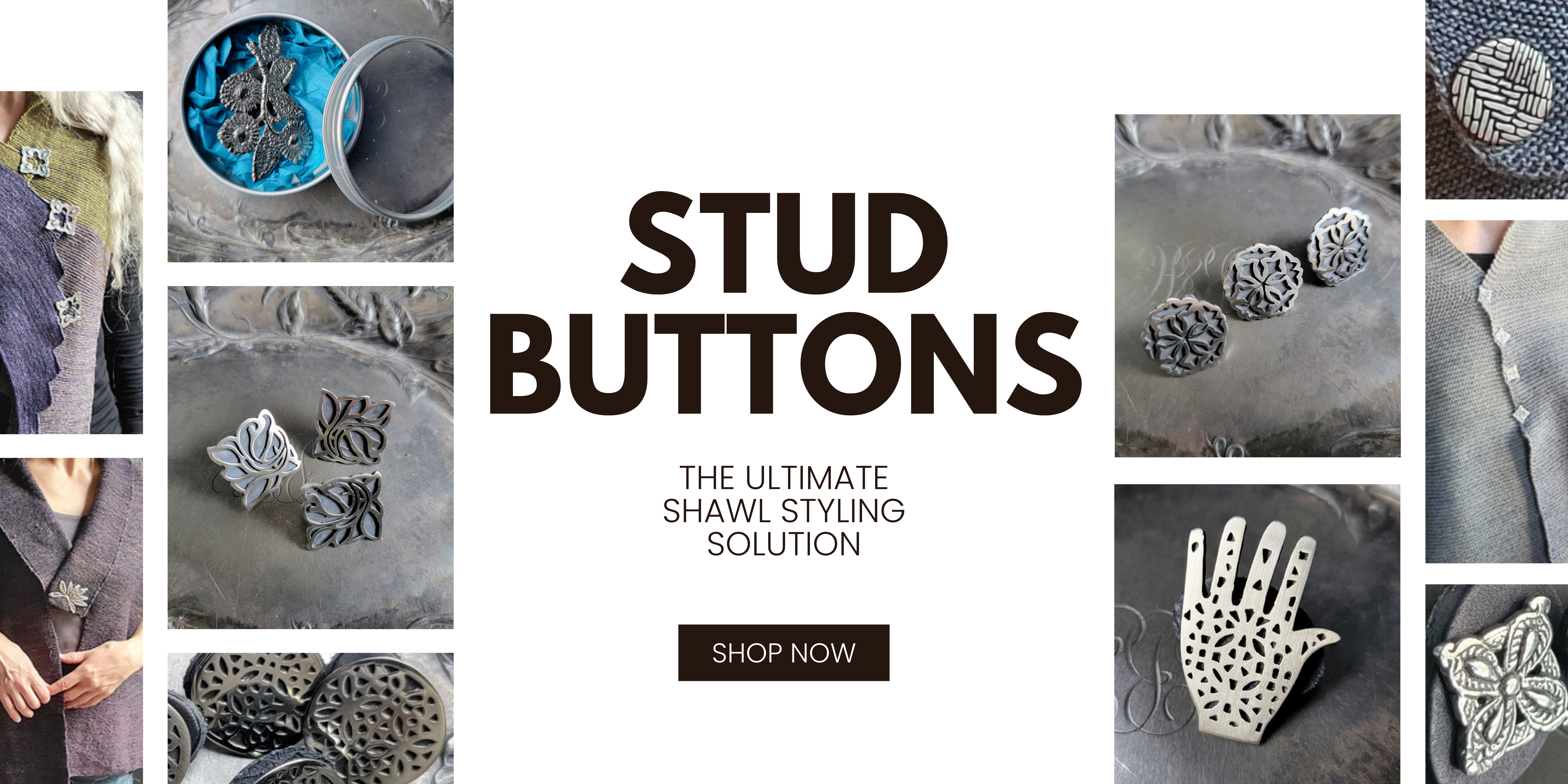 From securing a heavy winter wrap to creating a flattering "V" neck on a loose shawl, Stud Buttons adapt to your needs. They are, quite simply, the best styling solution ever created for the modern maker.